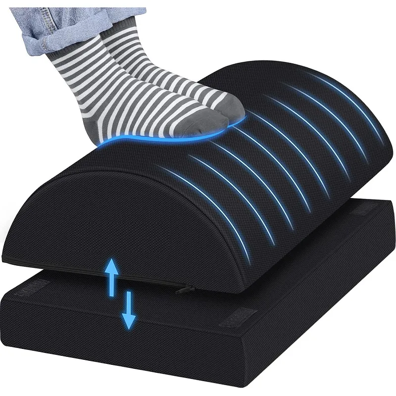 Pēdu balsts ir ergonomiski izstrādāts ar pietiekamu augstumu un izliekumu, lai labāk mazinātu spiedienu uz jūsu ekstremitātēm un diskomfortu, ilgstoši sēžot, palīdz veicināt labu sēdēšanas stāju, lai uzlabotu stāju un asinsriti.